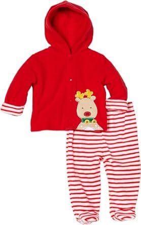 Dress your little Santa's helper in this cozy, soft, reindeer adorned, micro fleece hooded jacket and footed pant set, A great holiday gift or just a perfect outfit for your little one to wear in his first holiday card picture
