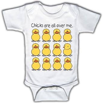 For the cute baby boy in your life, this short-sleeve funny onesie says it all! You'll have to excuse him for boasting a little, but those are definitely chicks all over him. He's not making it up. Guaranteed to get "cheep!" laughs, probably even loud "cackles," wherever he goes!
